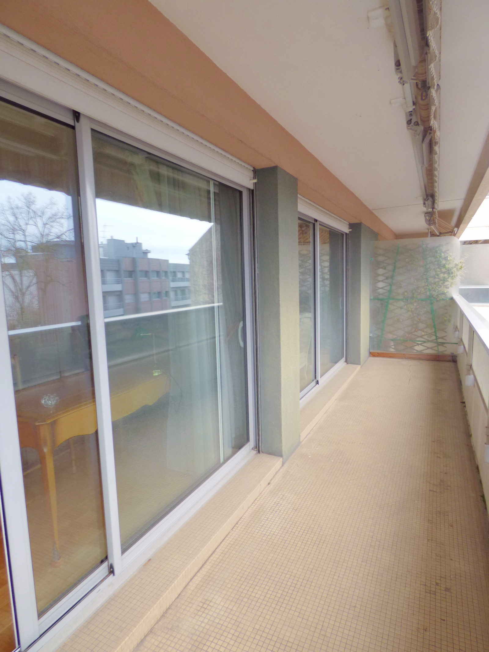 Séjour de 37m² donnant sur un balcon de 10m², Cuisine, 2 grandes chambres (dont une avec dressing), salle de bains, Wc, Rangements.